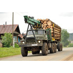 Лесовоз может перевозить сортимент в составе автопоезда со специальным лесовозным прицепом.